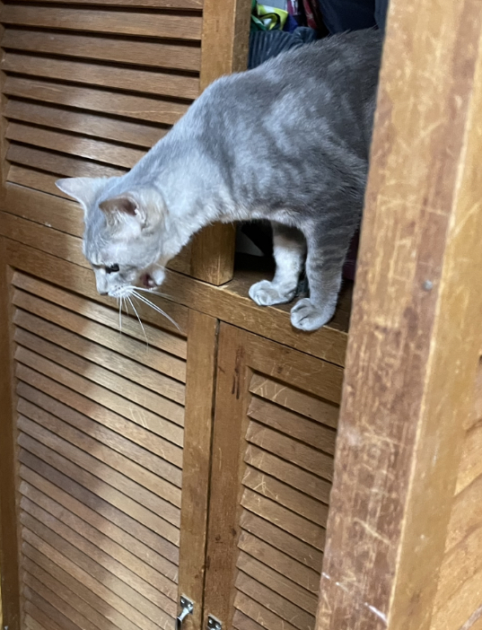 押入れの上の段に上がってにゃーにゃー言いながらママの服に毛をなすりつけているのはこのおネコ様です