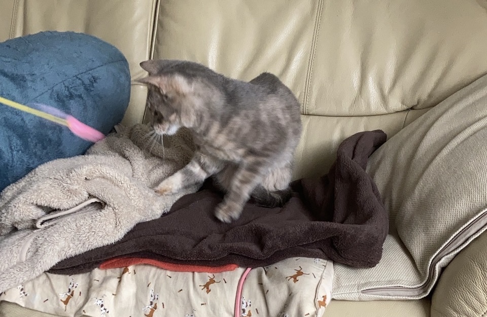 最初、死にそうなネコさまをウチにお迎えした時、ジジちゃんは保健所に連れていきなさい、とおっしゃいました。しかし3年前のその時、ママはこうなる事を予想していました…ジジちゃんがおもちゃを買ってネコさまに貢ぐようになる事を…